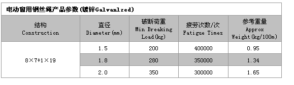 8×7+1×19 電動窗用鋼絲繩